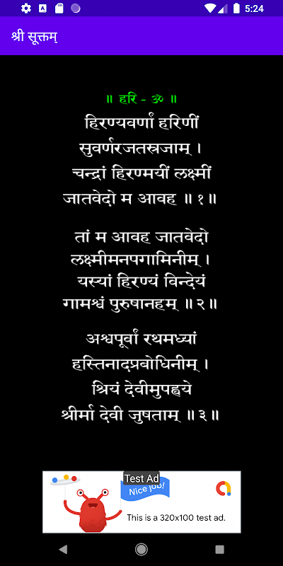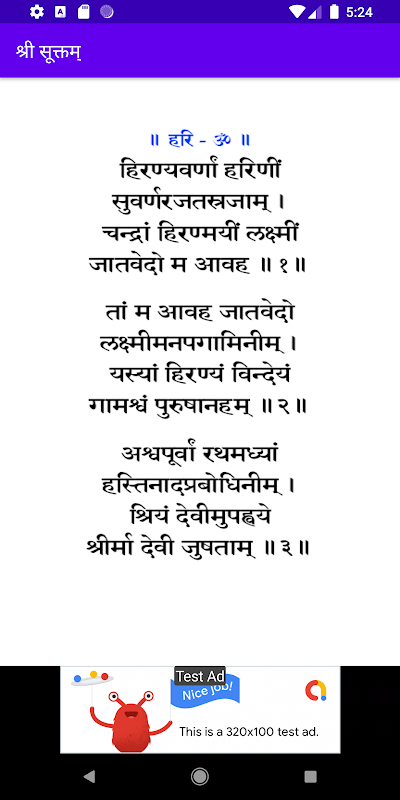 Sri Suktam is a Sanskrit devotional hymn revering Sri as Lakxmi, the Hindu goddess of wealth, prosperity and fertility. The hymns are found in the Rig Vedic khilanis. Sri Sukta is recited, with a strict adherence to the Chandas, to invoke the goddess' blessings.