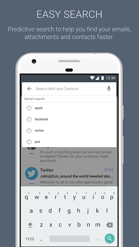 Smart Search – Powerful predictive search allows you to find any email, contact or attachment quickly and accurately from all accounts whether it’s stored locally or on the server.