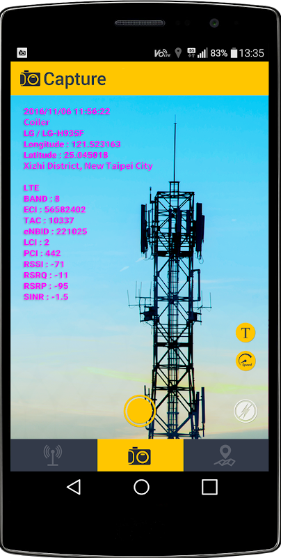 Get detailed network parameters such as signal strength, UL/DL speeds, cell ID etc. directly on your Android smartphone and display the data in overlay on geotagged photos for easy sharing.