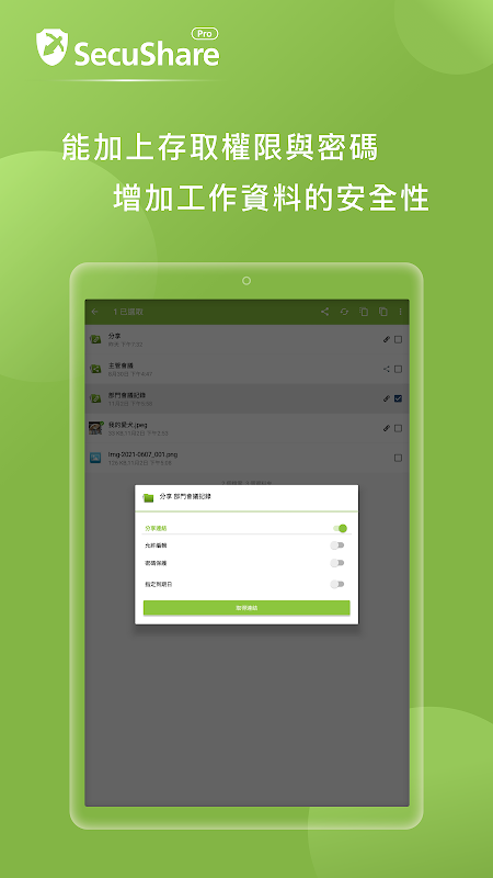 • Sharing: Through the secure internal account sharing folder and external link password setting mechanism, you can easily share files with colleagues, customers, and partners.