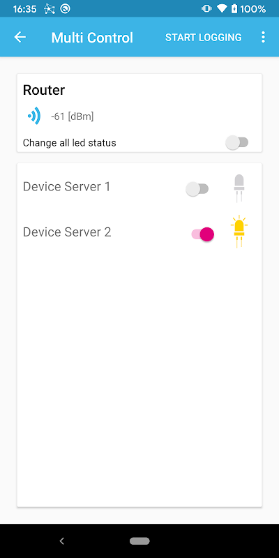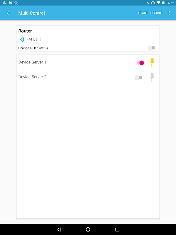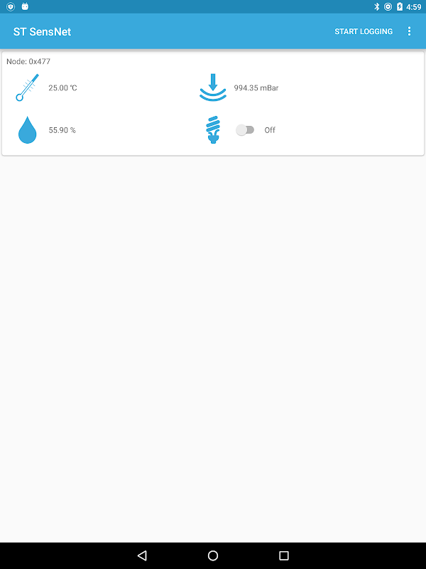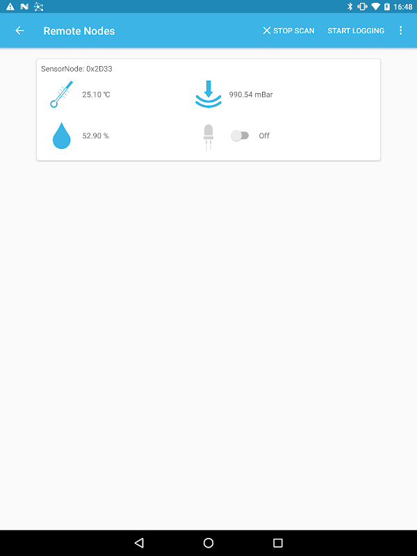After connecting, the screen will populate with all data coming from the BLE devices belonging to the BLE star network.
