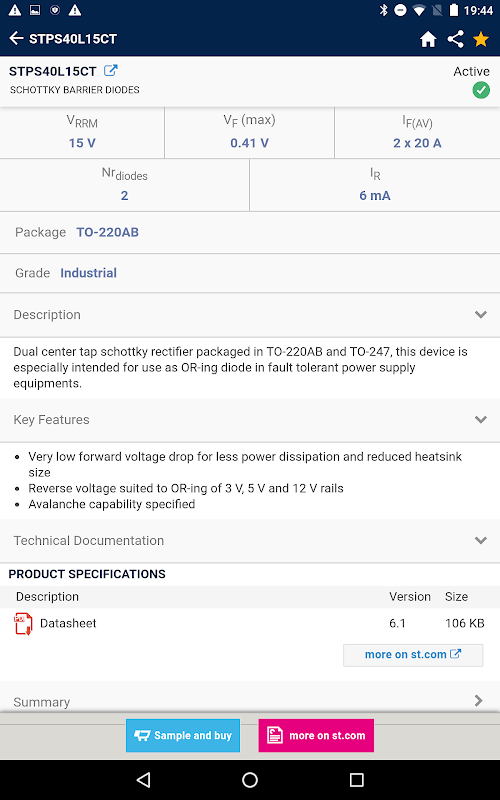 A smart and fast way to explore ST’s diode portfolio using a mobile phone or tablet with easier and faster access to the most important information about any diode in ST’s portfolio.