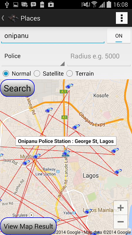 3) Displays places around you (with full address information) such as airports, schools, embassy, police station, train stations etc