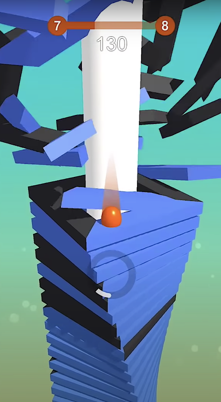 Press and hold on the screen and let the ball go down without touching the obstacles! Hold as long as possible to make combo and break the black blocks. Let the ball fall down from the helix stacks.