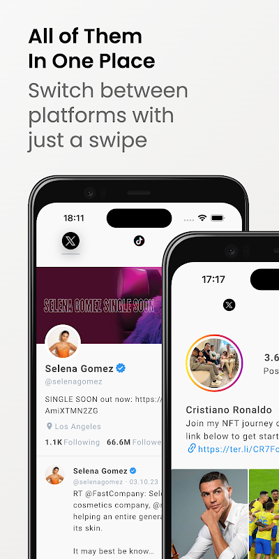 For now, stalKing supports TikTok, Instagram, and Twitter and will soon support other popular social media platforms. You can easily switch between independent social media platforms by simply swiping sideways with a single tap.
