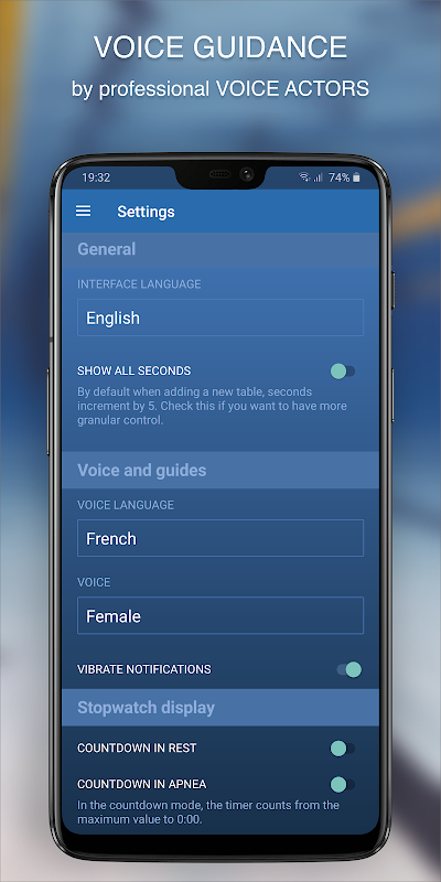 Get the notification to start your apnea training. In the application, you can set a reminder for the day and the time, which will send a notification that it is time to go through a training session.