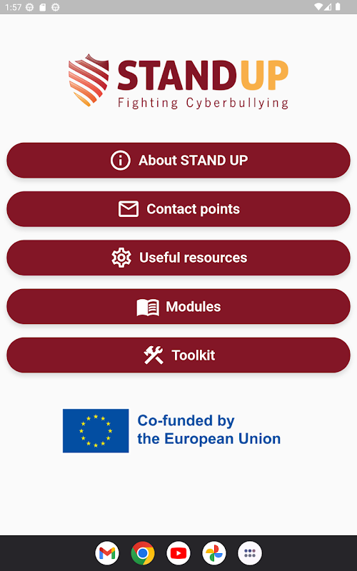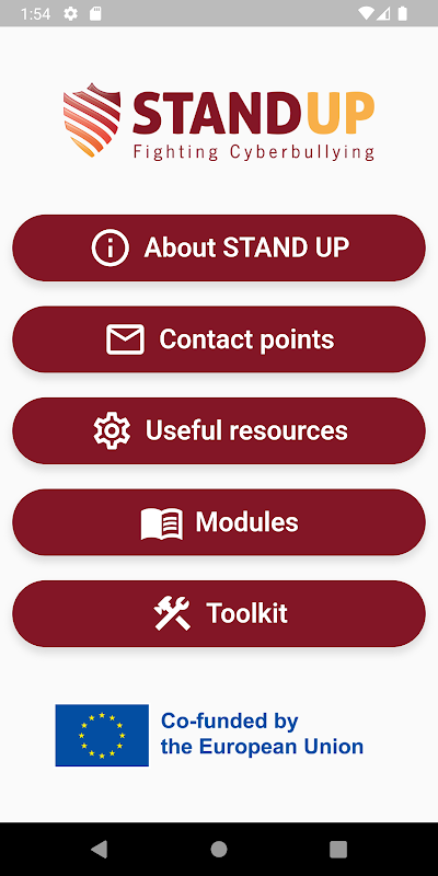 The STAND UP App encompasses different possibilities that aim to create a light and fast tool to gain knowledge of cyberbullying, giving information to VET educators on how to tackle it. The app is developed in a multiplatform way, so that everyone can access it and it can be downloaded freely.