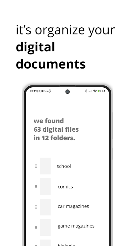 You can organize your digital files very quickly by letting the app create groups and categories for your files according to your folder organization or you can decide which group each file belongs to.