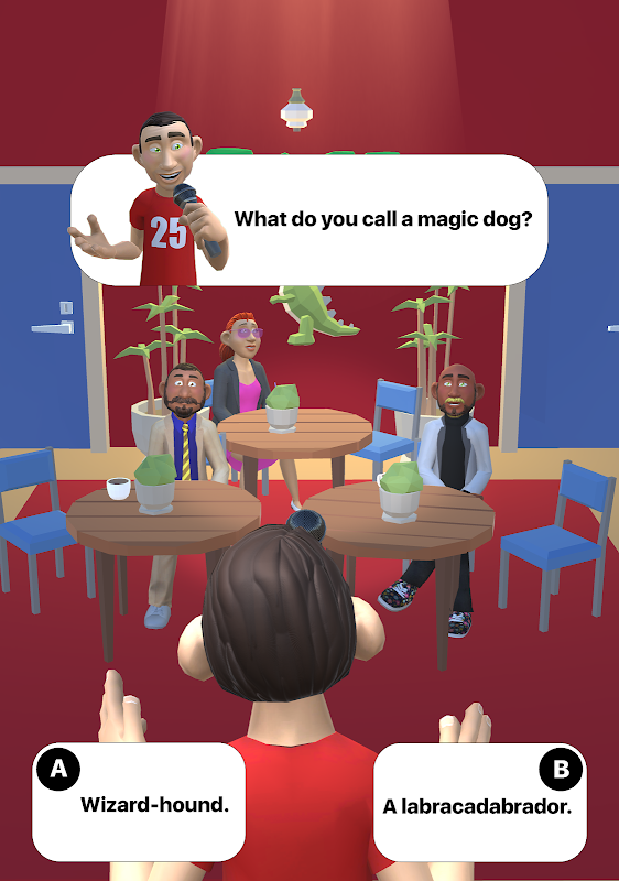 Start your career as a stand-up comedian! Test out your jokes on the unsuspecting audience in front of you. Which punch line will you choose? Will you have the rolling off their seats laughing? Or will you flounder and fall?