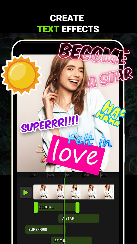 Best star video editor with music and transitions, easy to make a video/photo slideshow and cool music beats videos. Use the video editing & video creator app to add movie effects to make music videos, cinematic movie video with effects. And it can even be the video intro maker for your videos. Splice videos to make montage videos and easy star vlog videos.