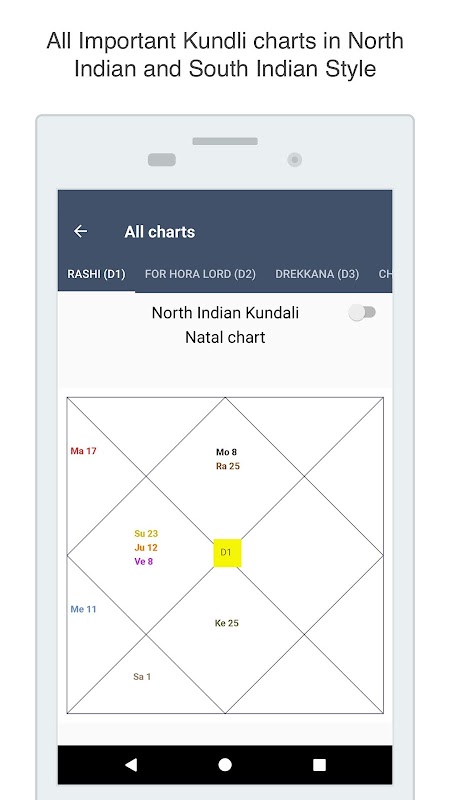 ⁃ Shodashvarga - All 19 divisional charts (South Indian and North Indian)