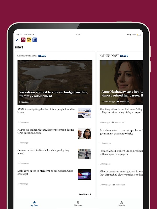 · Use the Discover tab to explore trending stories from our newsrooms across Canada.