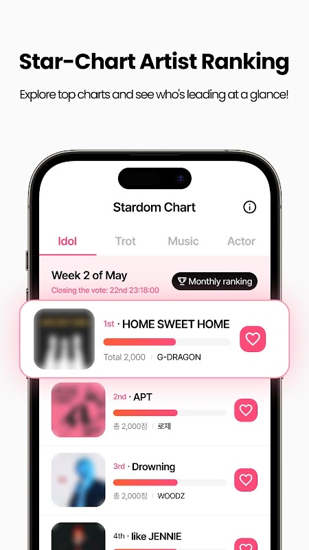 Vote with stardom, from weekly voting broadcasts to awards related voting!