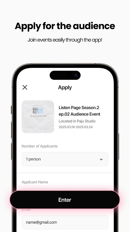 Listen to the event easily with the app! Now, you can apply for the event through the app,