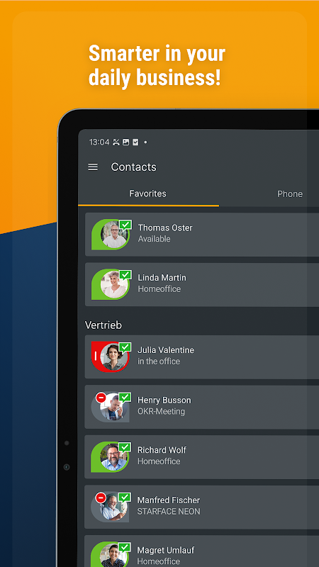 The STARFACE Apps combines powerful high-end business telephony with a seamless integration of instant messaging, voicemail, video chat, and faxing. These UCC features are also available for your Android smartphone.
