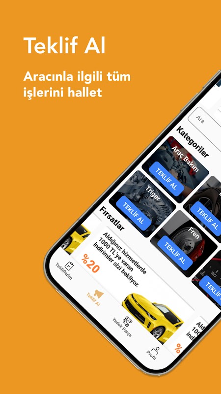 "Start a Car" mobile application is a platform where vehicle users receive maintenance and repair price offers from auto businesses for all their vehicle-related transactions (such as vehicle maintenance, repair, auto detailing, tires, window film, etc.) based on the province, district or km of their location or desired location. is the application.