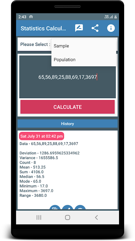 Calculate Statistics - min, max, range, sum, count, mean, median, mode, and more