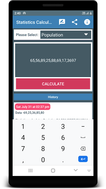 Use this calculator to compute statistical data from a set of numerical values.