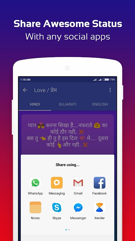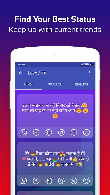 Status Guru is a FREE status app available for Android. Status Guru uses your phone's Internet connection to let you Status save and share with your love once. The user can get the latest status by daily notification.
