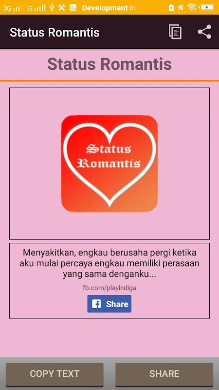 - Share teks, atau gambar status romantis ke media sosial