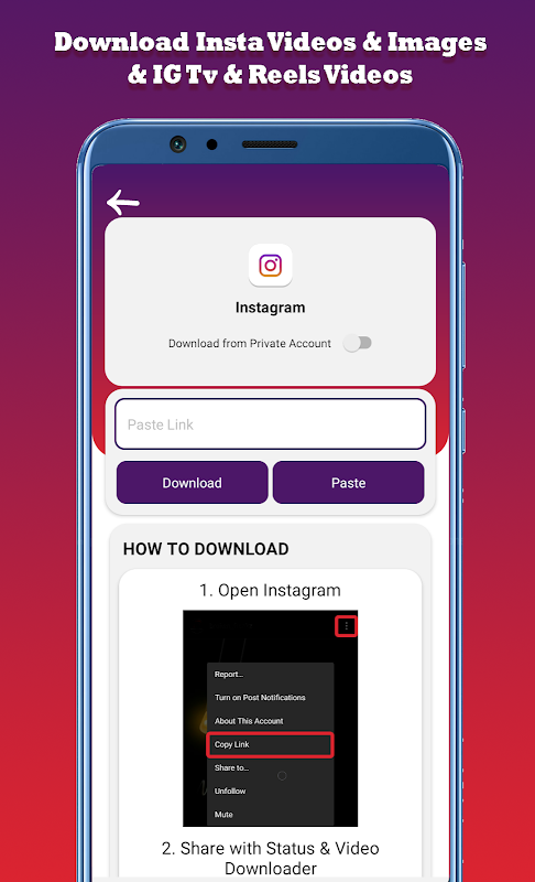 You have to Just copy the link from social media and paste it into the application and you get all status and videos.