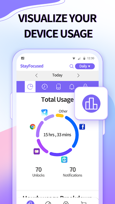 StayFocused - Screen Time Tracker & App Usage Limit is a self-control, productivity and phone addiction controller app that allows you to show how much time you spend on your device and helps you to be focused by limiting app usage . You can set usage limits for your app . Once you exceed the usage limit, your app will be blocked until the limit is removed. You can also view usage details and statistics of usage history.
