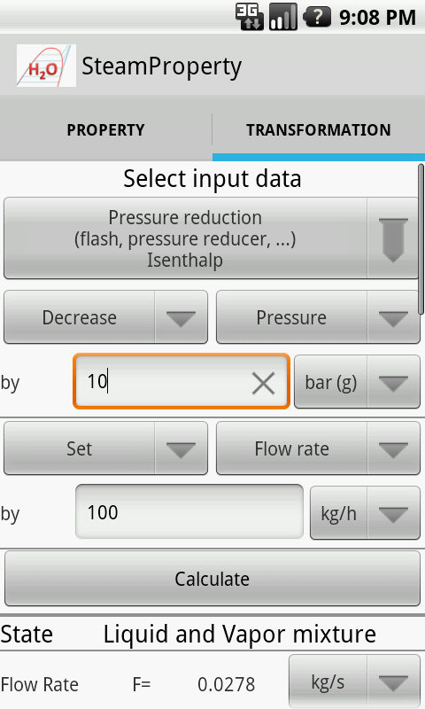 App for thermodynamic steam property calculation.