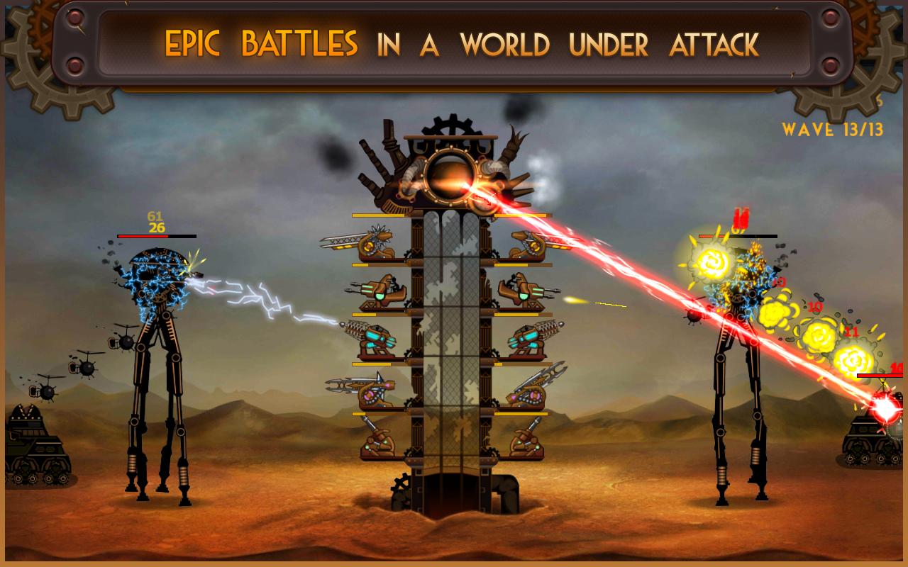 As the Imperial Army’s foot soldiers and mechanical monstrosities march into battle, fortify your epic spire with machine guns, cannons, lightning coil, saw launchers and more.