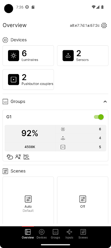 Right from the first start, the LiveLink system is ready for operation and fully functional. All system participants are recognized automatically, sensor functions such as motion detection and constant light control are preconfigured and active, connected pushbuttons allow you to switch and dim the lighting. If the lighting consists of Tunable White luminaires, among others, the HCL curve is also already activated.