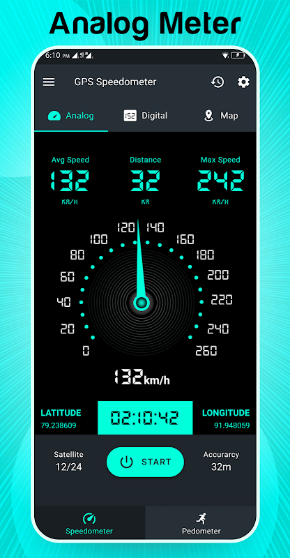 GPS Speedometer - step counter app features live location tracker, which allows users to track their real-time location. GPS location tracker and Speed tracker uses GPS speedometer to track location and provides a real-time map that displays user's current location. Calculate car speed and distance with car speed meter app. Speed tracker app to calculate vehicle speed in kph and mph unit.
