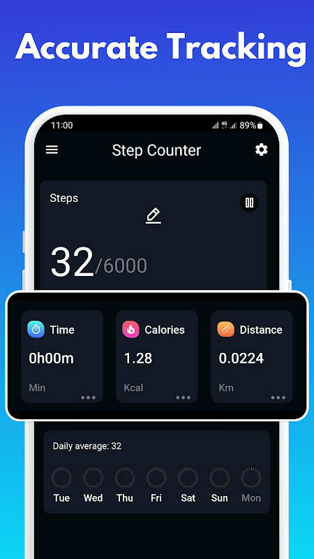 🚗 Driving Pause: In transit? Simply tap to pause step counting, resuming it whenever you're ready to start moving again. Tweak the built-in sensor's sensitivity for pinpoint accuracy in step counting.