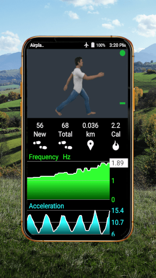 The most accurate step counter with precise real-time charts for your velocity, calories, step frequency (cadence), step length, and more.