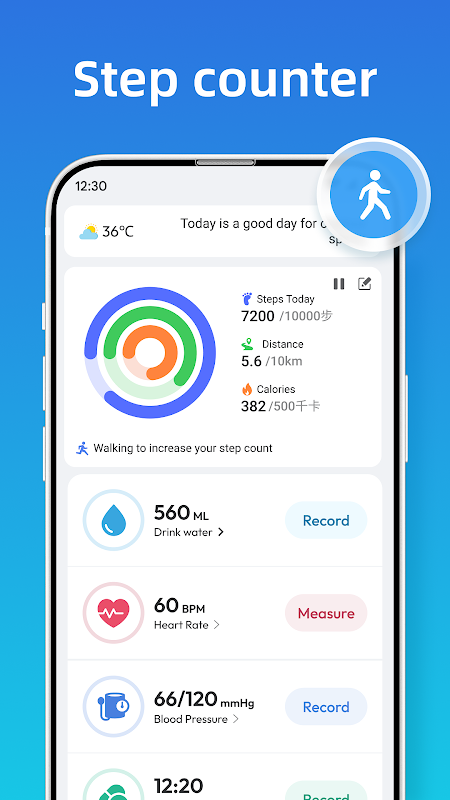 This is a health tracker, designed to help you lose weight & stay health. This pedometer tracks your burned calories, walking distance and time, etc. All this information will be clearly displayed in graphs. As a powerful step counter offline app, it ALSO can auto & accurately track your steps, calories and distance offline.