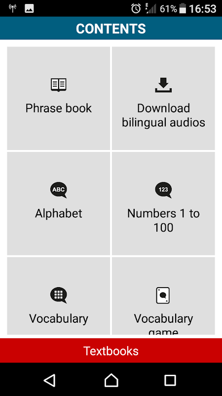 6. Tap on "Practice" in the Main Menu to practice the content of the lessons. Here you can also learn the alphabet and the numbers.