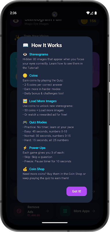 Train your eyes with hidden 3D images! Play quiz games, earn coins & unlock more