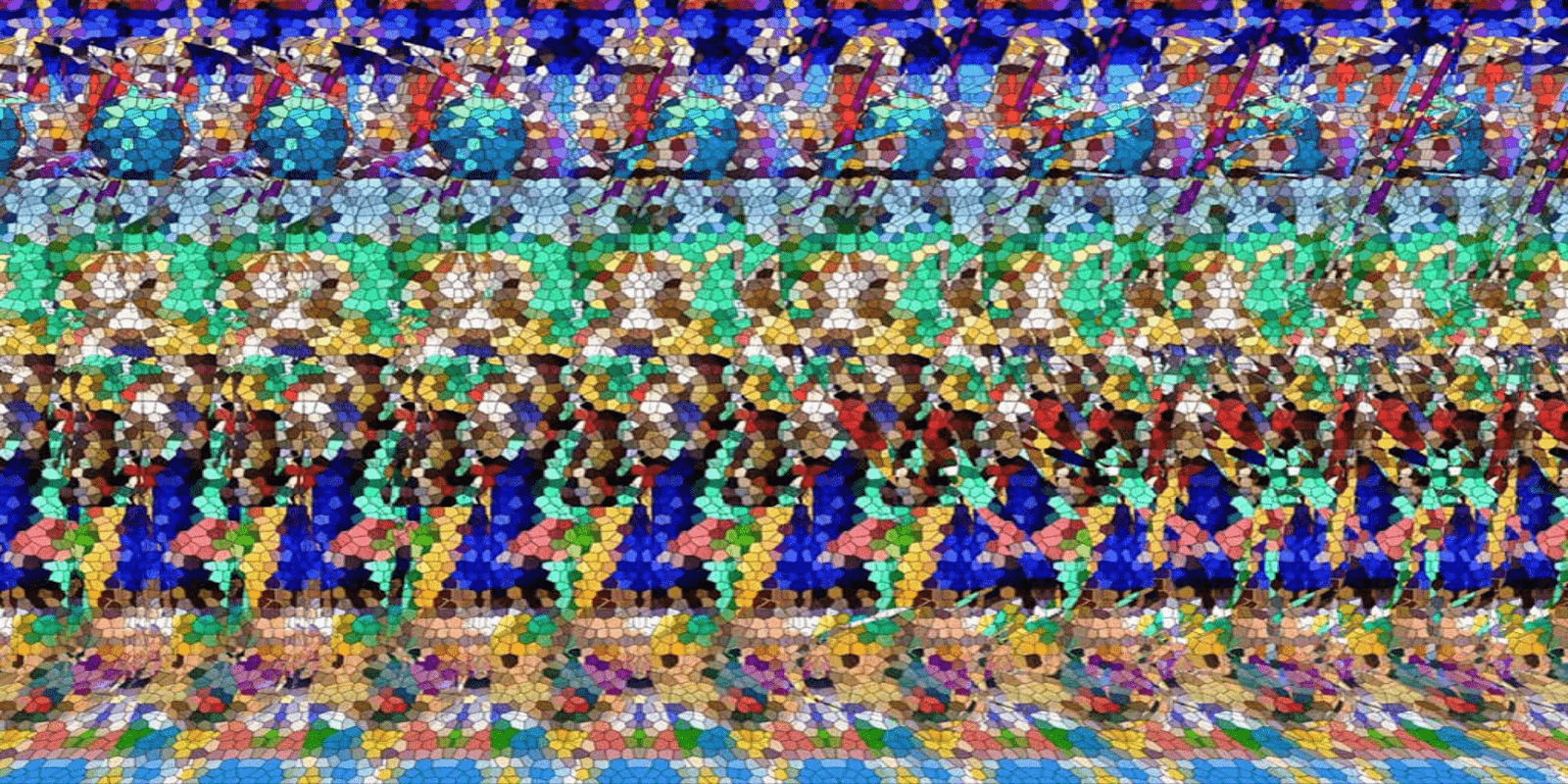 Stereo pictures are a flat image of repeating patterns of dots, geometric shapes and other objects on a certain background, in which a 3-D illustration is encrypted. The resulting stereo effect from viewing the drawing is based on the binocularity of the human visual system. The right and left eyes see the same object from different angles, and then combine it into a single three-dimensional image. The same happens when viewing stereo pictures. When closely observing it, there is a deception of vision and you can see a clear object in the visual chaos of small flat details.