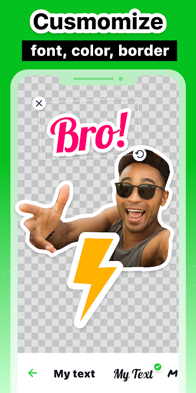 Download Sticker It for free on your Android phone or tablet, pick the photo you wish to convert to a sticker, cut the photo, add desired elements and emoji to it, and make final improvements. Your sticker is ready to be used on your favorite messaging applications. You can also create your own personal sticker packs and use them in different moods and situations. Your friends are going to be surprised once you send them your personal cool and funny stickers.