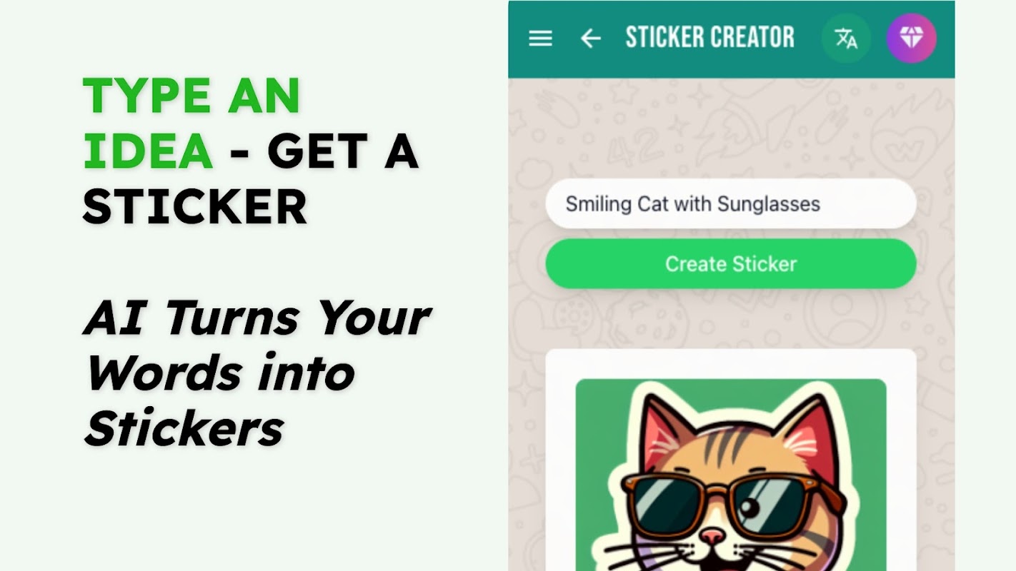 🤖 AI sticker maker: Describe what you want, and let the app generate fun, one-of-a-kind designs for you.