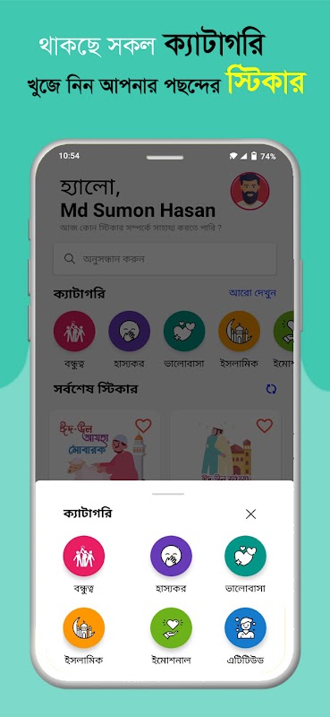 আমাদের অ্যাপে পাচ্ছেন বাংলা স্টিকারের বিশাল সংগ্রহ! মজার, বন্দুত্বর, ইসলামিক, ভালোবাসার, ইমোশনাল, এটিটিউড সহ সকল ধরনের ভাইরাল স্টিকার আপনি এখানে পাবেন।