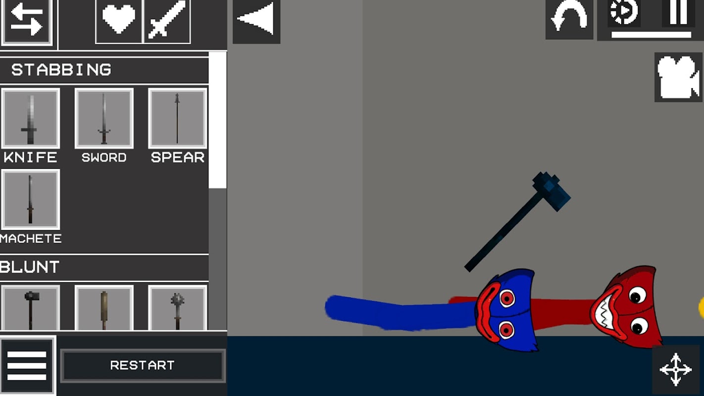 The primary objective of the game is to launch Huggy into the air and control his trajectory to hit targets or obstacles. Players can utilize an array of melee weapons, ranging from swords and axes to unconventional objects like melons, to propel Huggy through the air and interact with the environment.