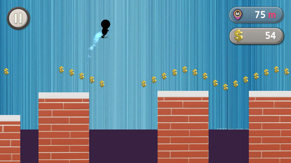 You play as a jumping stickman. The stickman will run forward on its own and jump when you touch the screen. The longer you hold your touch, the higher the stickman will jump. Your goal is to jump over every building, run to the end of the track and get as good highscore as you can. Stickman doesn't have wings to flappy flap like a bird, but it jumps very high. You have to do a lot of jumping to beat the tracks, but be careful: unnecessary jumping will not get you a good score! This is a hard game so be cool and don't get angry!