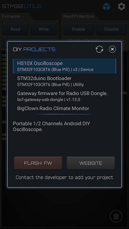 Easy flashing of STM32 Chipsets on the fly. Choose among several available DIY projects with available firmware to start with or flash your own firmware.