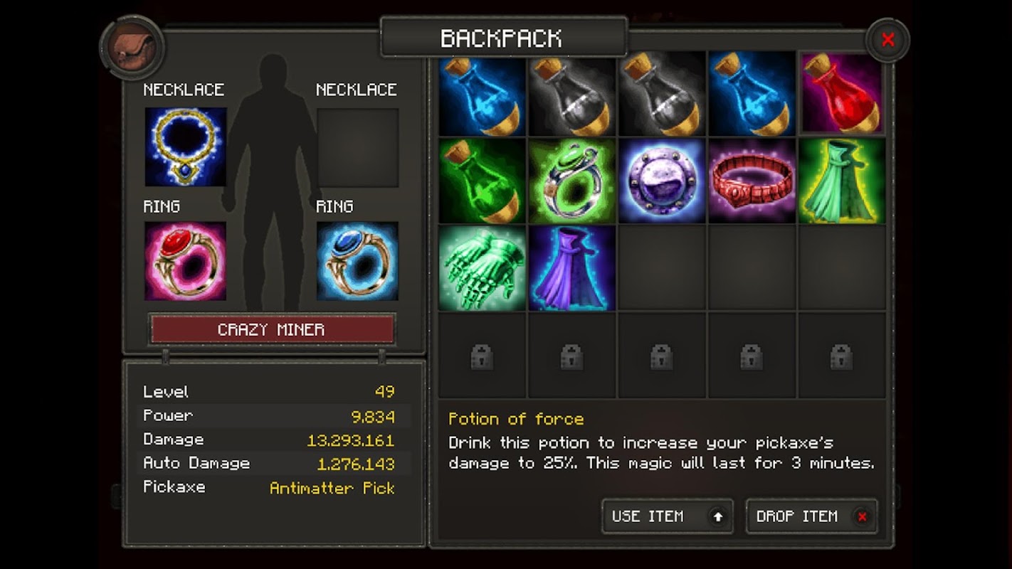 + Craft better pickaxes and upgrade your tools and skills to become an epic miner and blacksmith.
