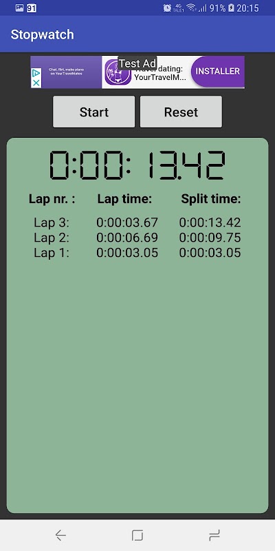 Stopwatch is an app that acts like a real stopwatch with laps- and split-functionality.