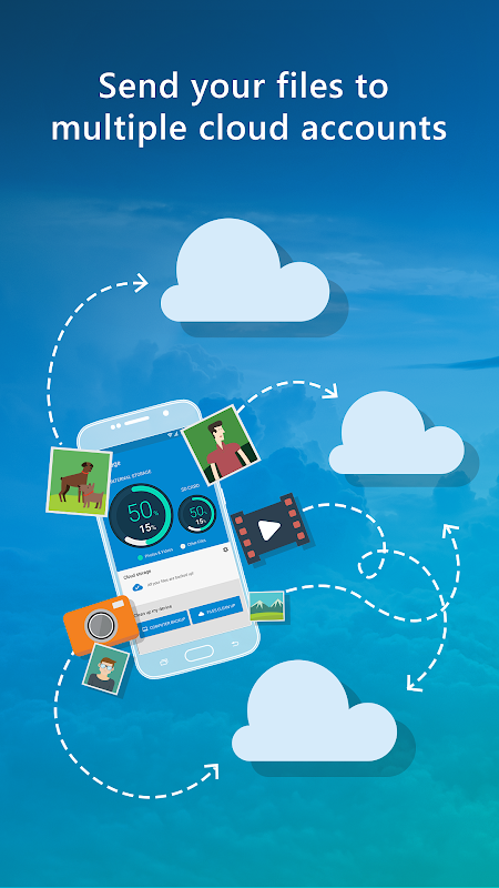 The +Storage connects to your OneDrive, Dropbox or Google Drive account and easily upload your files or entire folders. Backup is done in background so you can use your smartphone for other tasks. Once the upload is complete you may choose to clean up the backup files and reclaim valuable storage space.