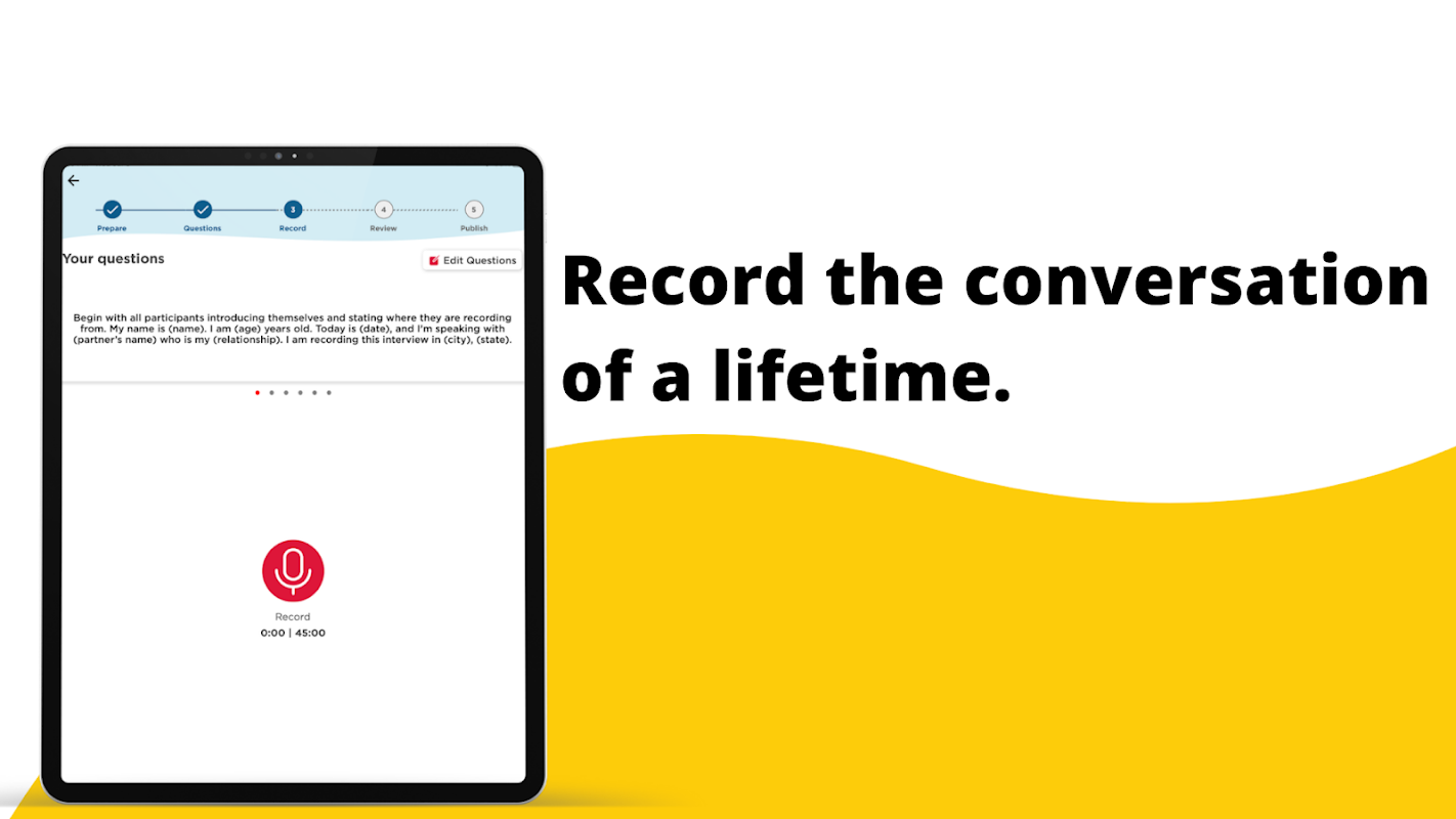 Since 2003, StoryCorps’ commitment to recording local stories, creating award-winning content, and helping illuminate the humanity in each of us has contributed to nearly 700,000 people across the country having meaningful conversations. Get involved by downloading the App today! Here are some of the features to look forward to: