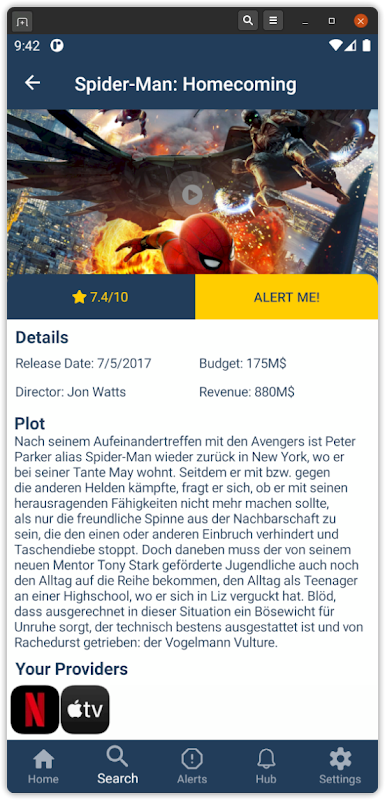 With StreamAlert you get notifications when one of your favorite movie, TV show or content of an actor or director is available on one of your streaming providers.