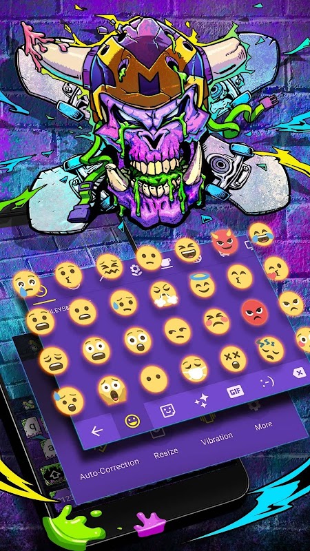 About Street Graffiti Skull Keyboard Theme with Emojis