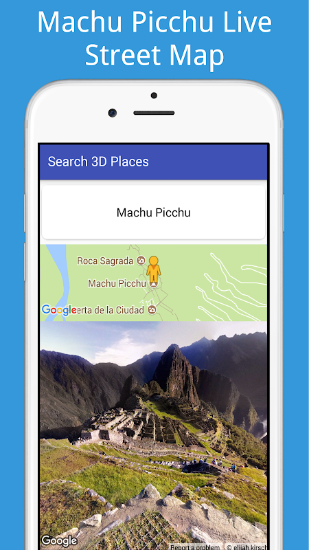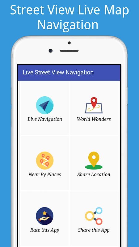 Street View live map , find address of current places or others as you wish and preview its street image,tap preview button to view its full image in native google map it show you street view with live navigation turning in all available directions to move.