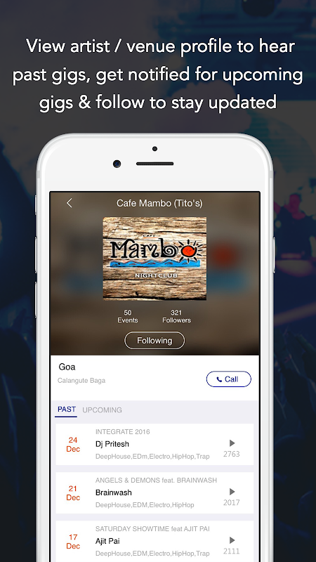 6.check out venues & artists profile to hear their past gigs & get notified for upcoming gigs